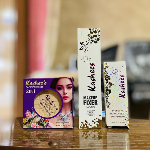 3 in 1 Kashee’s Deal, Foundation, Compact Powder, & Fixer (random shades) Pack of 3