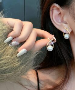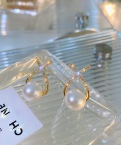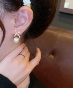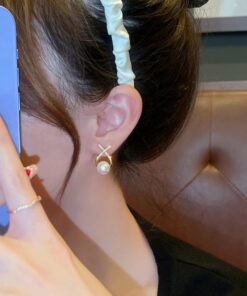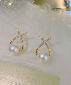 Elegant Golden Cross Pearl Zircon Earings Pearl Stud Earrings