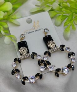 Imported Elegant Floral Hoop Earrings with Black and Crystal Accents | Best Quality Earrings For Girls & Women | Luxury Look Earrings